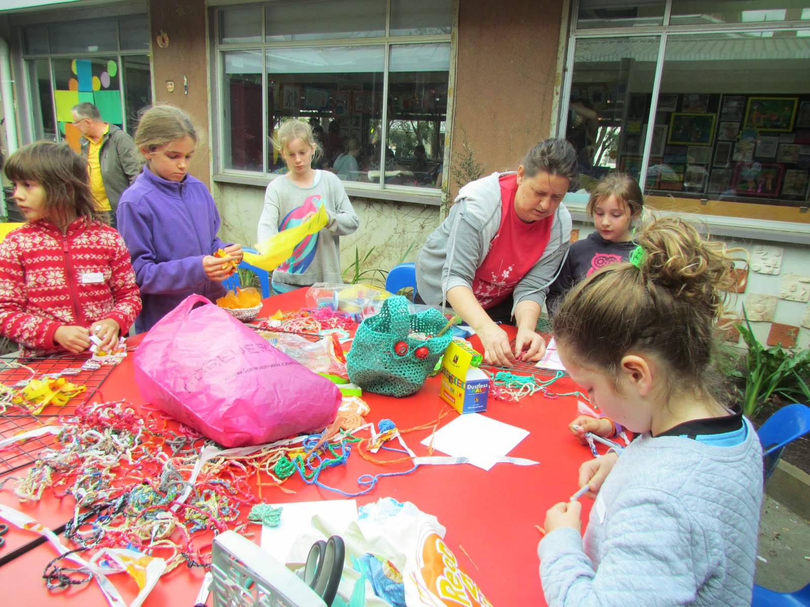 Today we took part in the school art workshops. We thought we would teach the kids to do plarn graffiti for themselves - surely a handy life skill? Instead they wanted to learn to crochet. Also a handy life skill...
